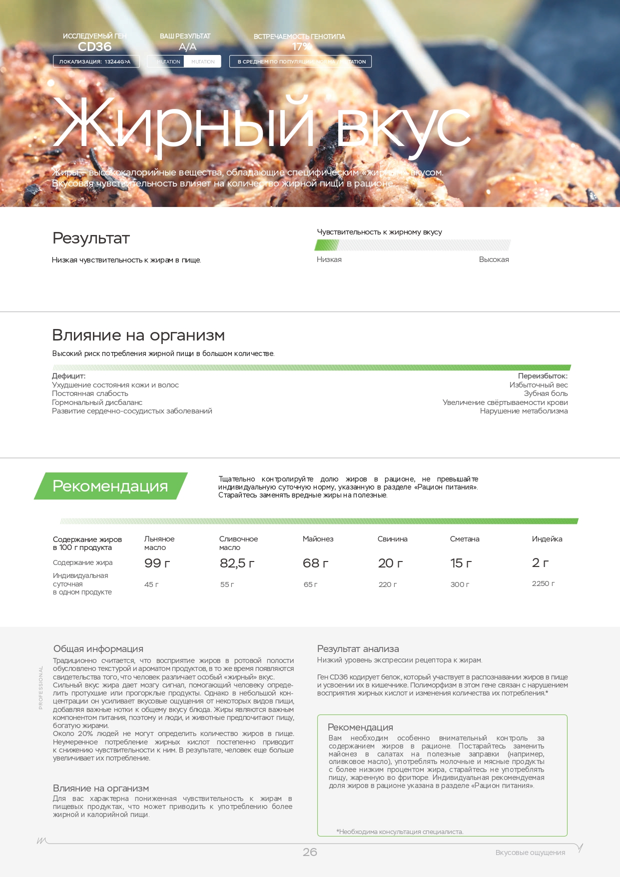 Помните, что помимо физических нагрузок большую роль играет питание. Вы также можете пройти ДНК-тест на диету, который покажет, каких веществ не хватает в организме, какие организм усваивает лучше, а какие хуже и многое другое.